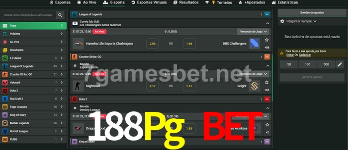 O 188Pg Bet oferece uma grande seleção de opções de apostas em e-sports com probabilidades competitivas